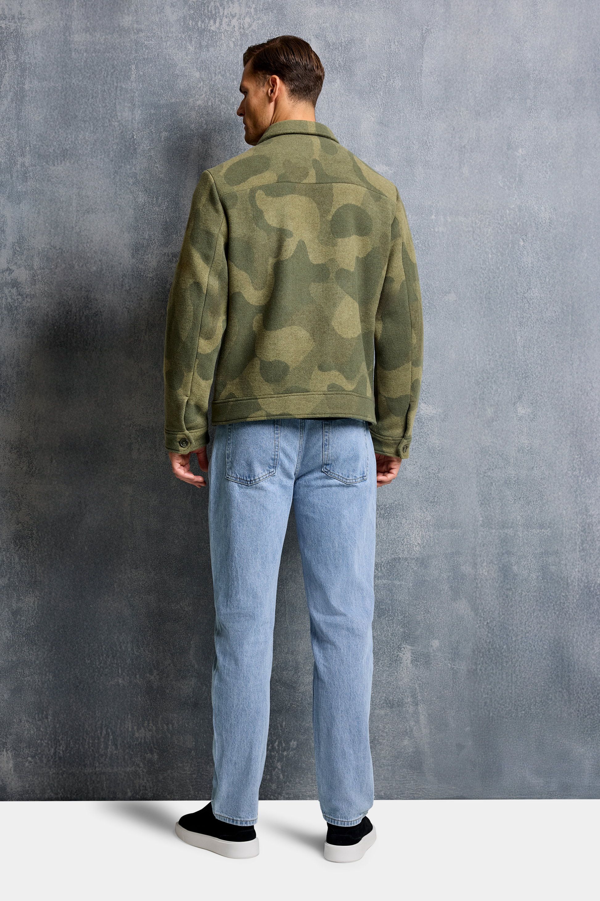 Crafted from a soft premium wool blend with a subtle camo jacquard texture, it delivers comfort, character and quiet confidence in equal measure.